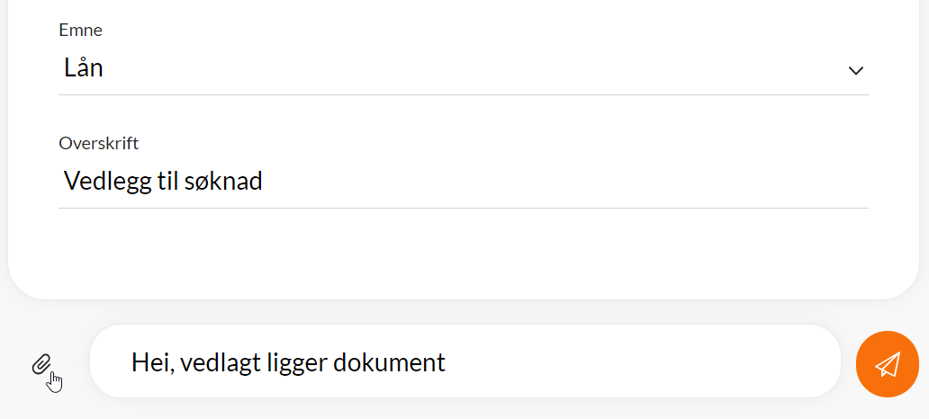 Skriv overskrift og melding og legg ved vedlegg ved å trykke på bindersikonet.