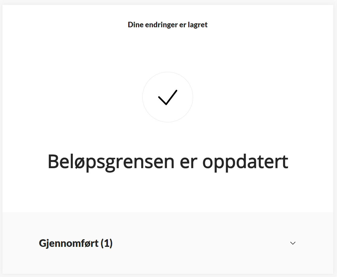 Etter BankID signeringen så vil beløpsgrensen være oppdatert