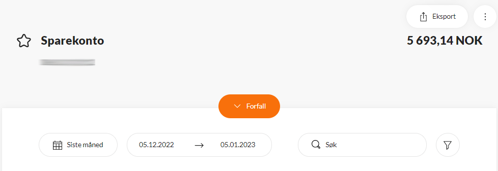 For å se om du har noe til forfall på din konto trykker du på den oransje knappen midt på siden som det står "Forfall" på. Er den tom har du ingen betalinger eller overføringer til forfall fra denne kontoen.