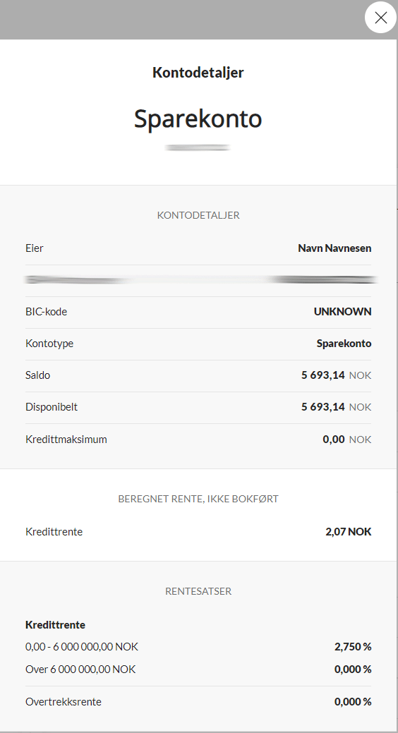 - Opptjent rente på sparekonto finner du under Beregnet rente, ikke bokført på det hvite feltet.