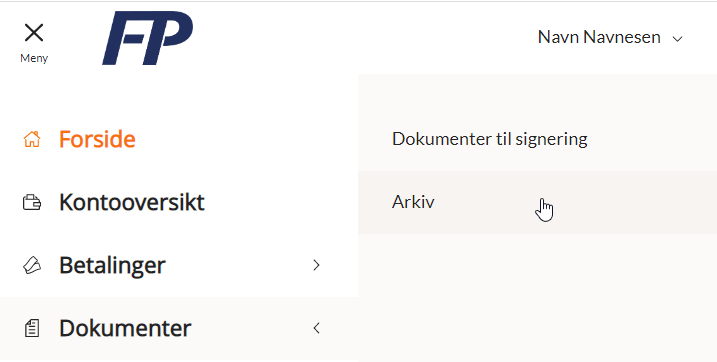 Trykk på Meny oppe i venstre hjørne i nettbanken, Dokumenter og deretter Akriv.