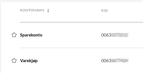 Du vil se ditt KID nummeret til høyre for dine kontoer. KID nummeret starter på 0063 osv. Hvis det står punktum mellom tallene så skriver du inn numrene uten punktum i nettbanken.