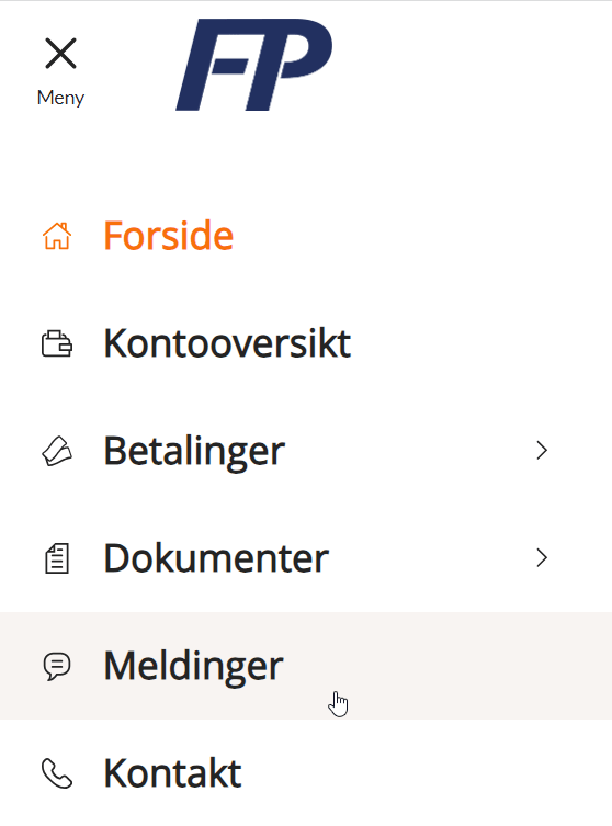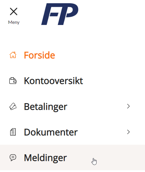 For å sende oss en nettbankmelding med evt. vedlegg går du fra menyen og inn på Meldinger.