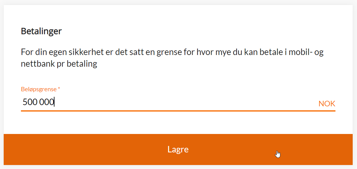 For å endre beløpsgrensen må du ha mobil og BankID klar for SMS-vertifisering og signering