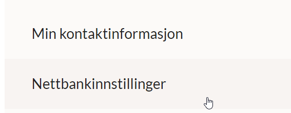 For å velte en standard betalingskonto som automatisk er valgt hver gang man besøker betalingsvinduet, gå til nettbankinnstillinger.Start med å åpne menyen på venstre side og trykk Instillinger ved ditt navn nederst