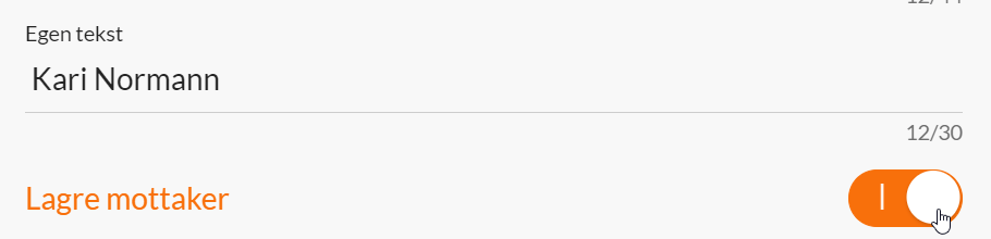 - Skriv inn navn på mottaker (NB! maks 35 tegn inkl mellomrom) på feltet under "lagre mottaker" f.eks. "Lønnskonto". Den vil bli synlig på din liste ved neste betaling.