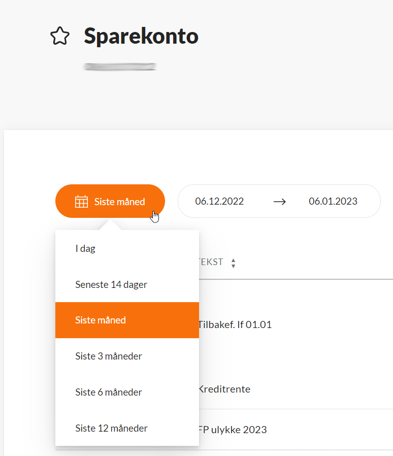 Trykk deg inn til f.eks. sparekonto fra kontooversikt.